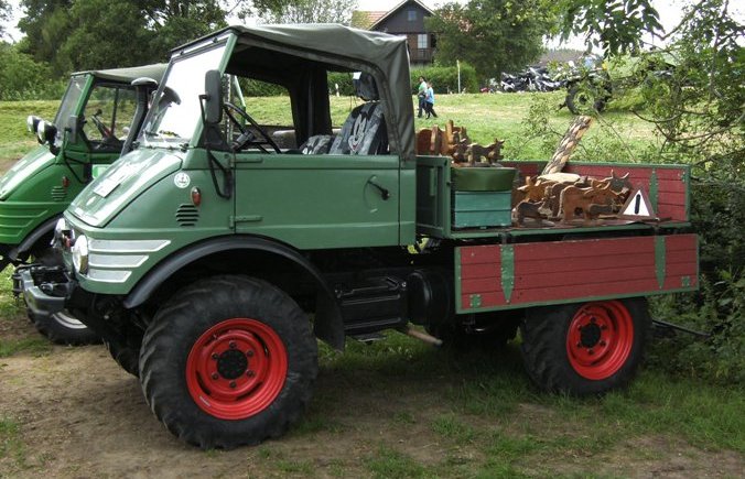 - viele Unimogs, manche (besonders die Älteren) sehr schön hergerichtet