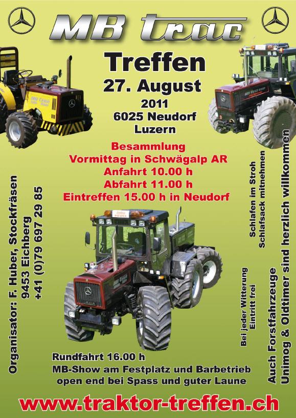 Am 27. August 2011 findet das Treffen statt. Der Ort ist noch nicht definitiv. Aus Erfahrung kann ich nur sagen dass das sicher super wird und viele viele MB Tracs zu bestaunen sind!