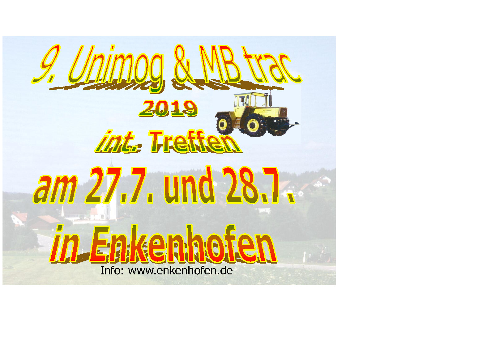 +--- Thema: 9. int. Unimog und MB trac Treffen am 27. -28. Juli 2019 in 88260 Enkenhofen (/showthread.php?tid=35024)