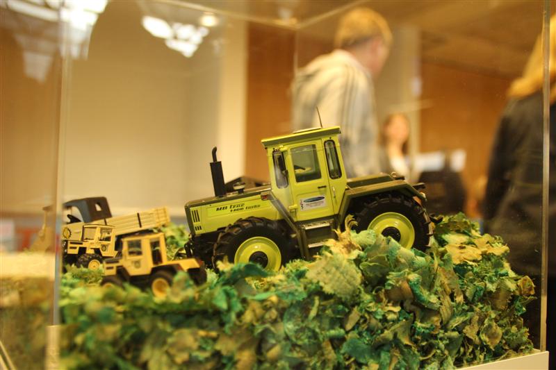 Der MBtrac Fan wurde schon mit einer Fahne am Eingangsbereich begrüßt und in den Hallen erwartete ihn neben den Sondermodellen auch ein MB trac 1300 in 1:1. Wenn ich mich nicht irre sogar einer aus dem Forum.