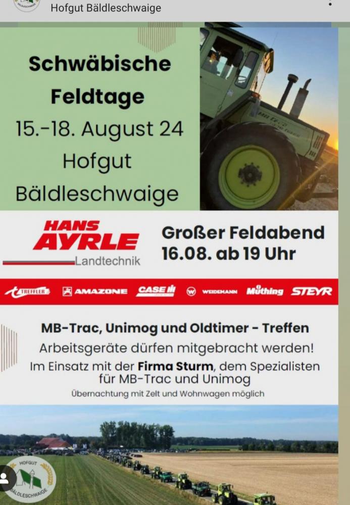In gut einen Monat ist es soweit die schwäbischen Feldtage sind.